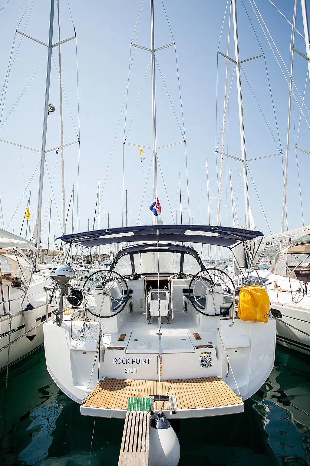 Bímini, Capota antirociones, Motor fueraborda, WC eléctrico, Calefacción, Panel Solar, Cockpit cushions