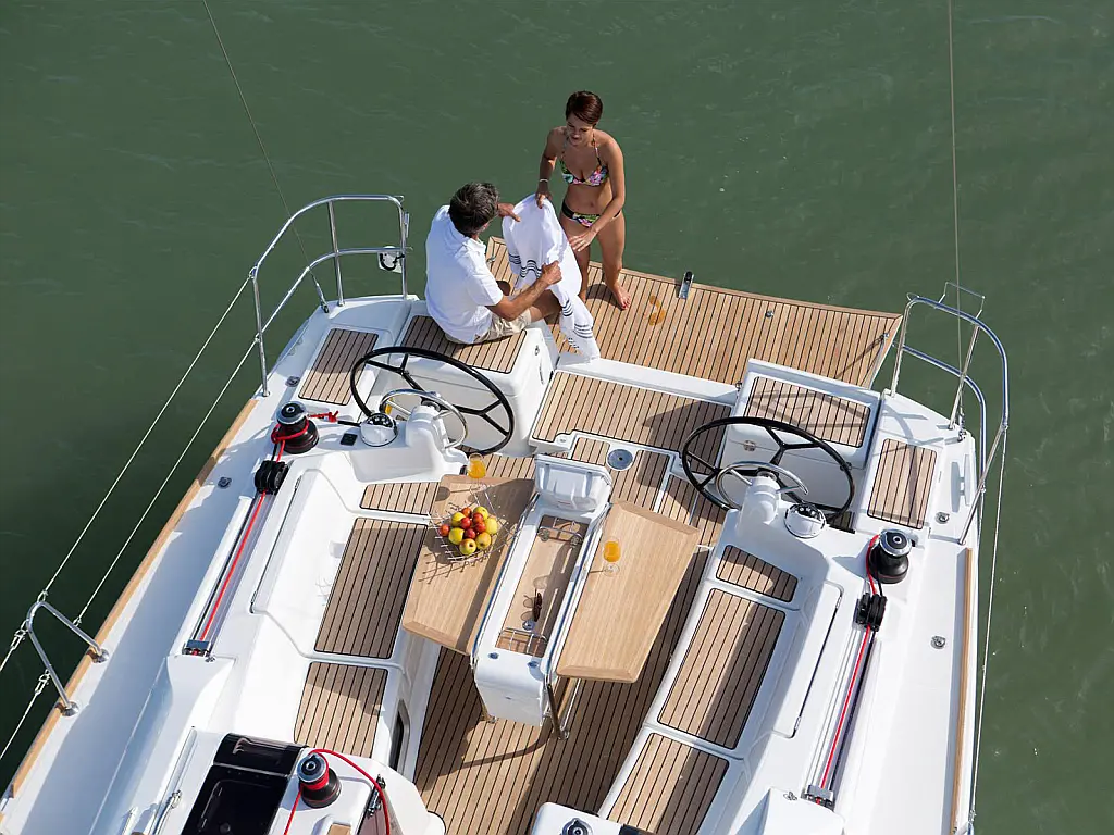 Cockpit cushions, Altavoces exteriores, Teak Cockpit, Embarcación auxiliar, Nevera, Panel Solar, Bímini, Capota antirociones