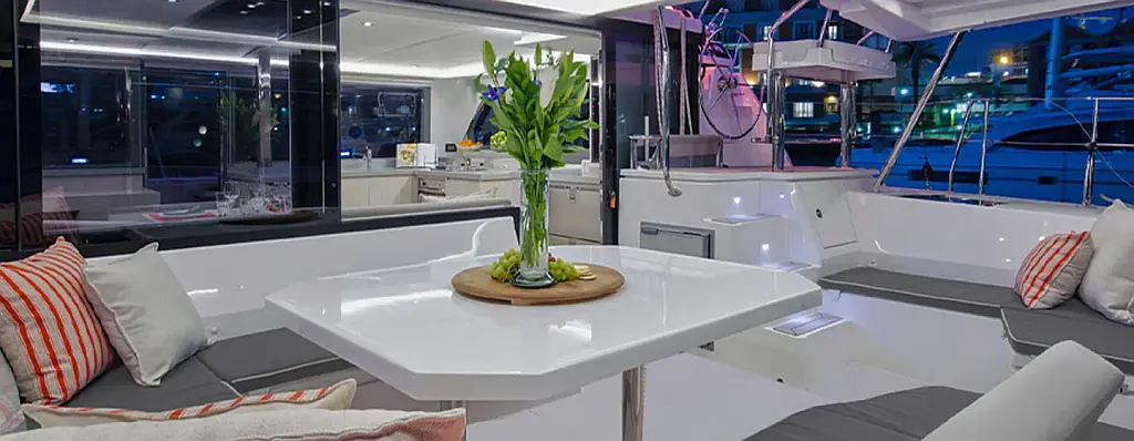 Nevera, Bímini, Aire acondicionado, Altavoces exteriores, Cockpit cushions, Generador, Panel Solar, WC eléctrico, Desalinizadora