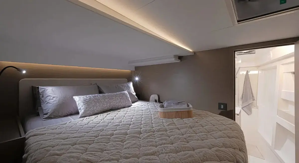 Nevera, WC eléctrico, Aire acondicionado, Winches eléctricos, Altavoces exteriores, Cockpit cushions, Bímini, Convertidor, Generador, Panel Solar, Desalinizadora, Depósito de aguas residuales