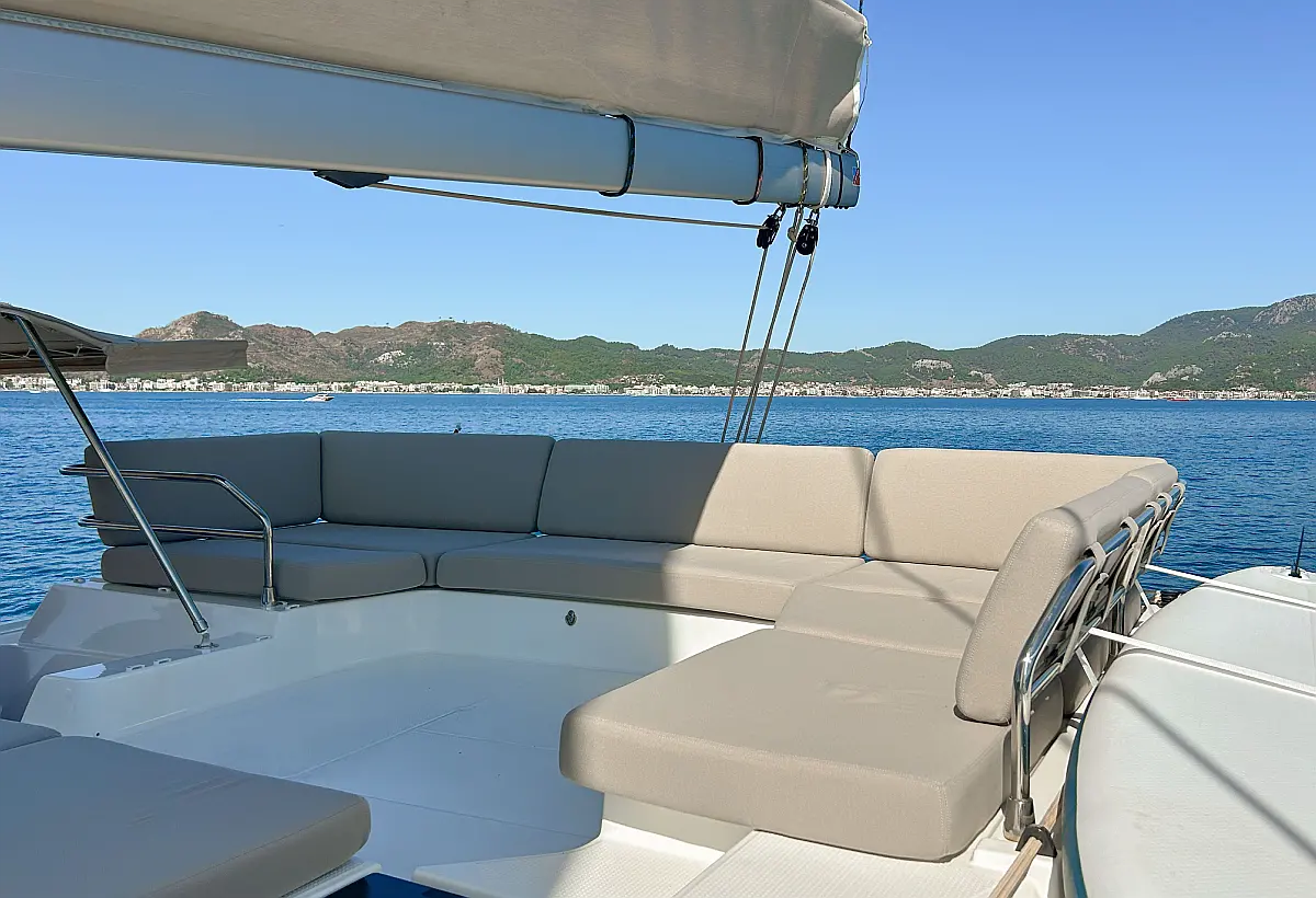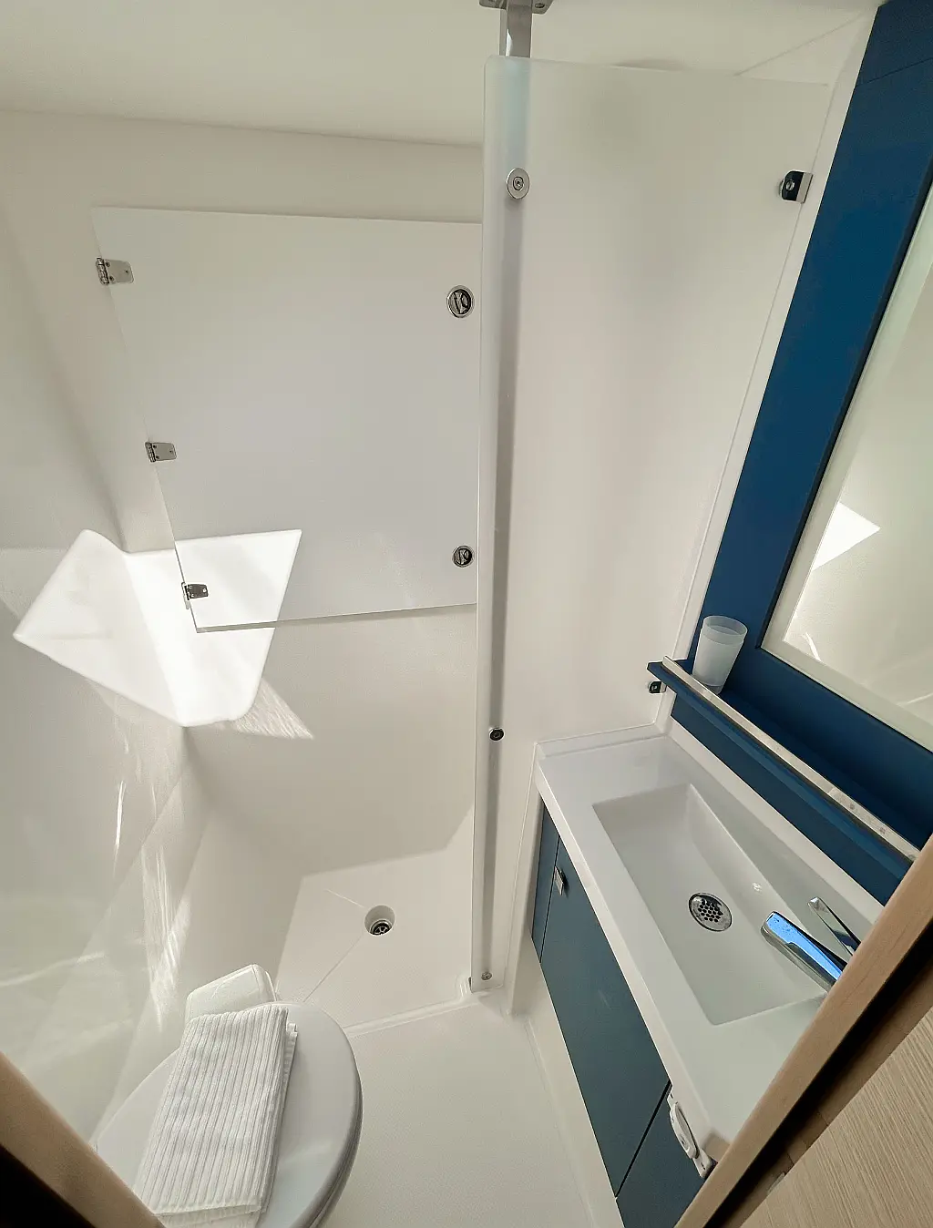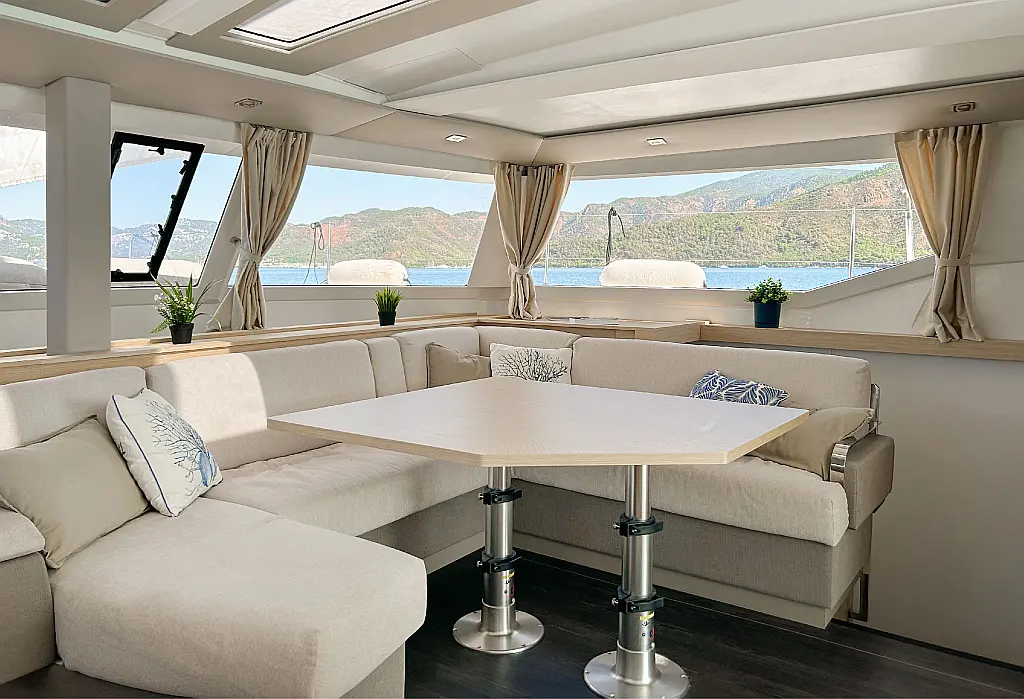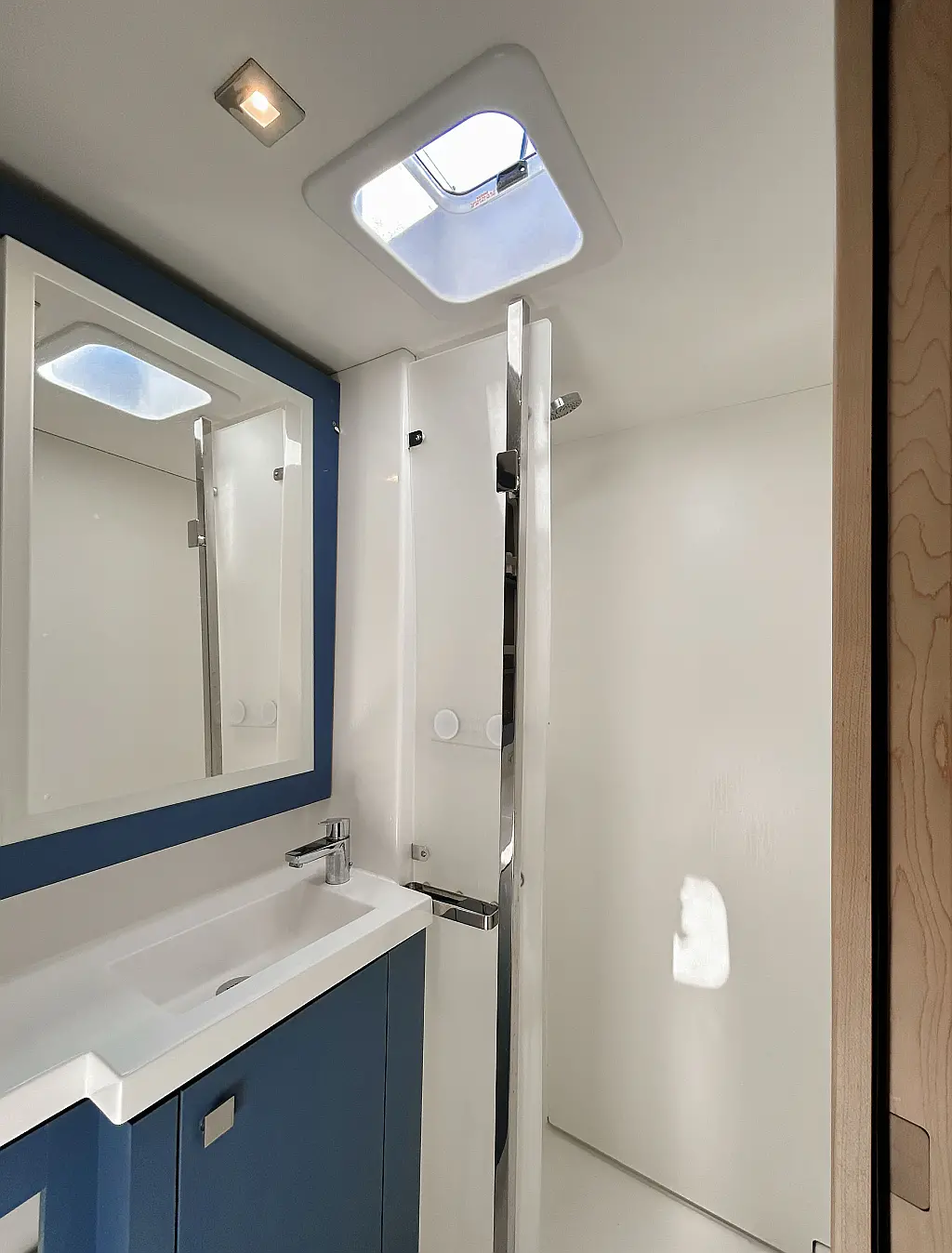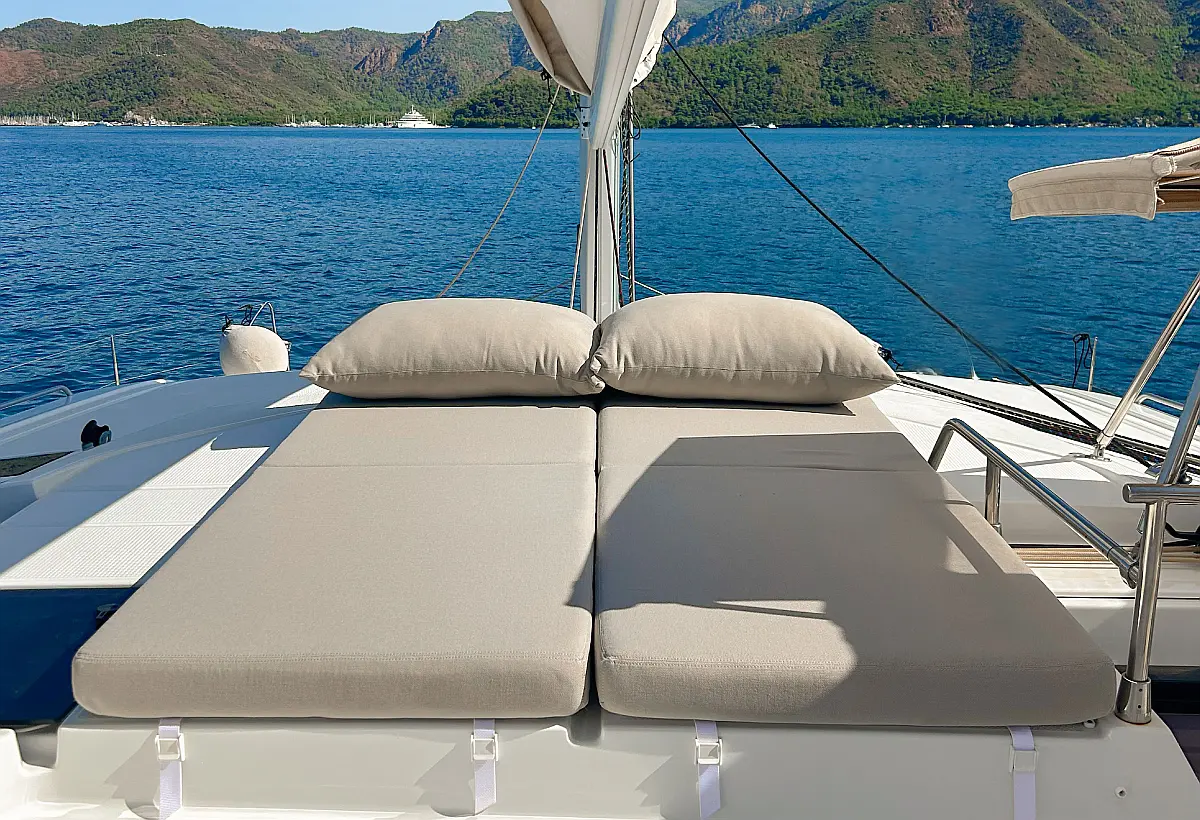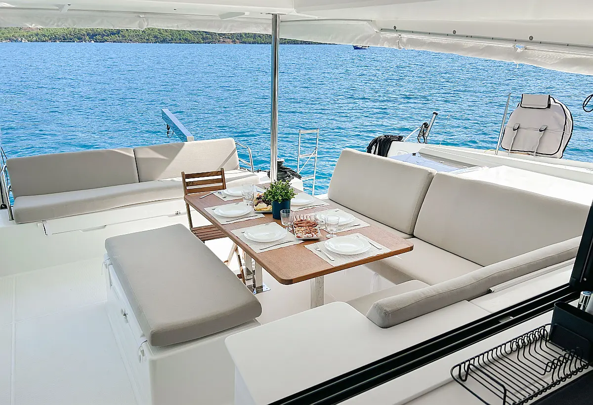 Generador, Embarcación auxiliar, Cafetera, Convertidor, Aire acondicionado, Desalinizadora, Winches eléctricos, Nevera, Panel Solar, Cockpit cushions, Altavoces exteriores, Wi-Fi e Internet, WC eléctrico, Flybridge, Parrilla en carlinga, Bímini, Máquina de hielo, Motor fueraborda, Capota antirociones