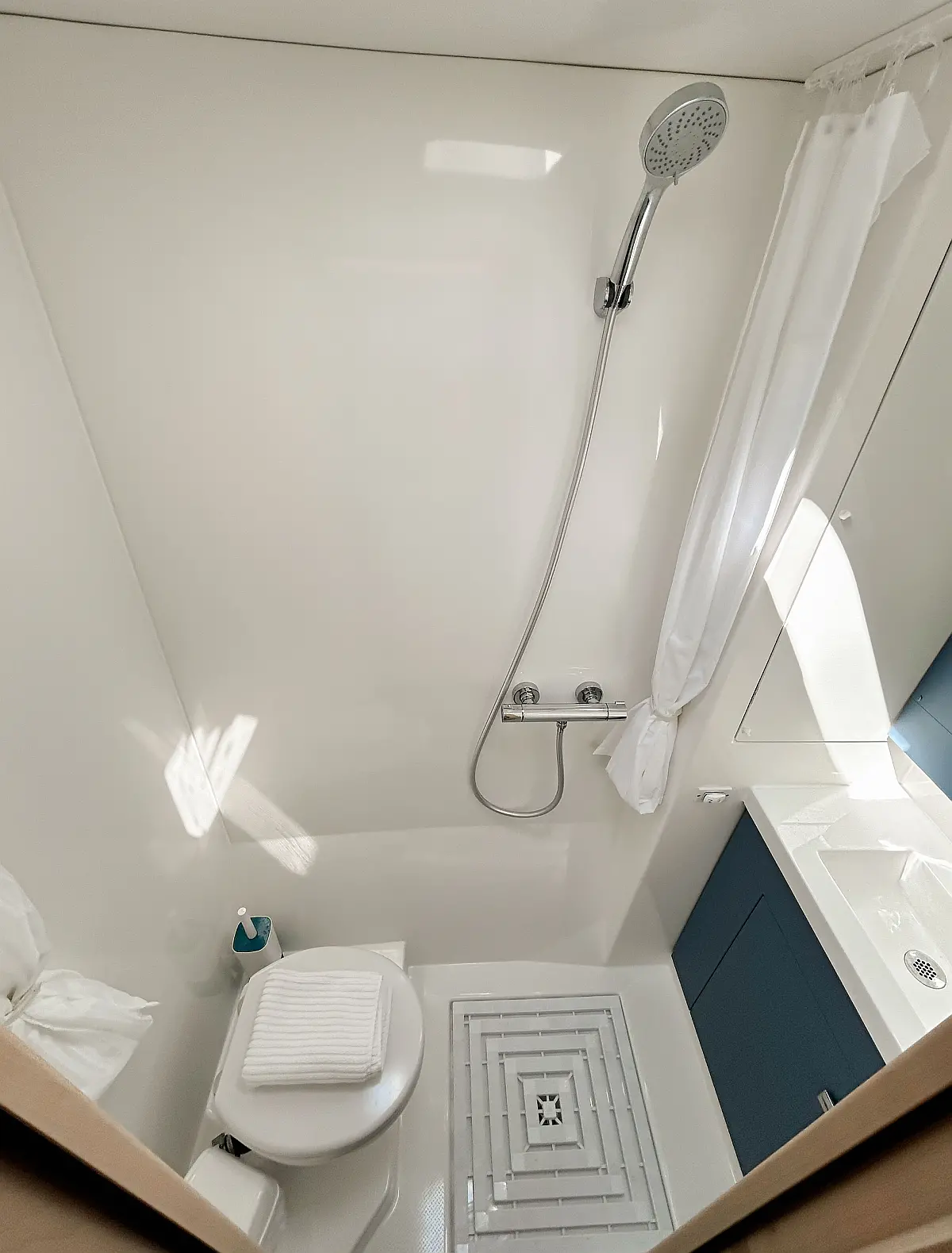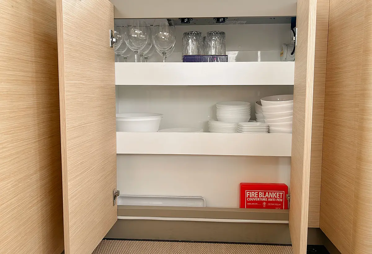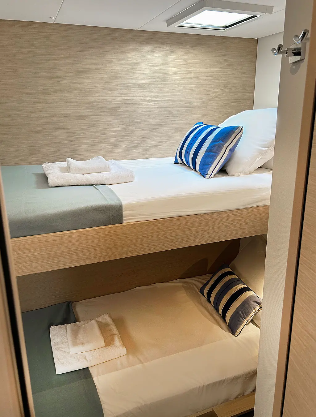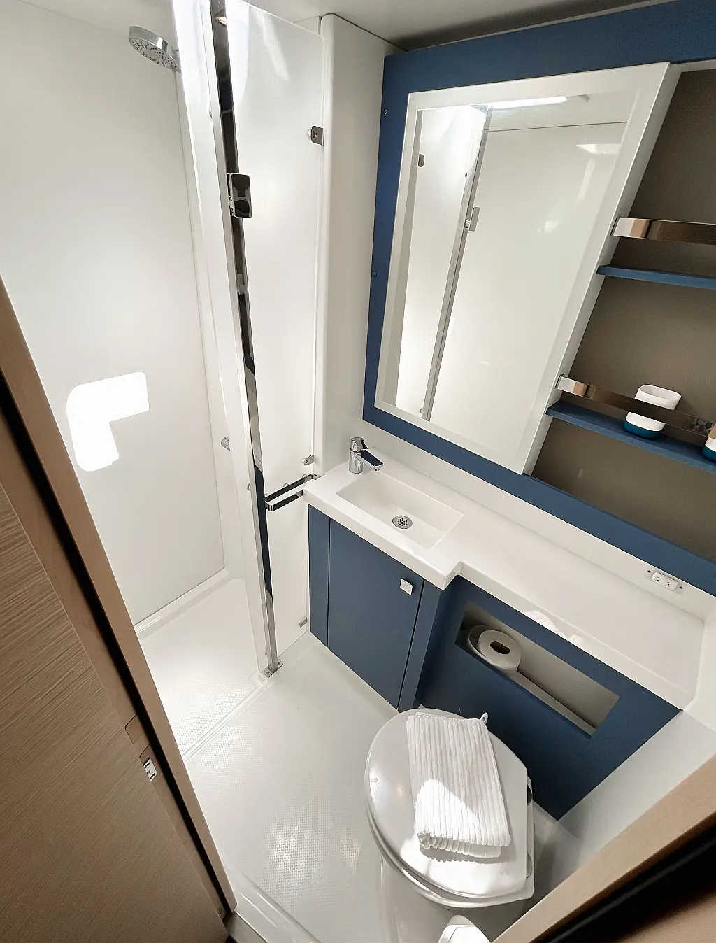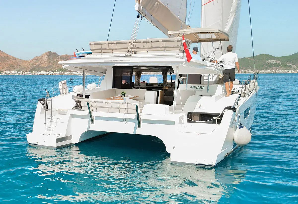 Generador, Embarcación auxiliar, Cafetera, Convertidor, Aire acondicionado, Desalinizadora, Winches eléctricos, Nevera, Panel Solar, Cockpit cushions, Altavoces exteriores, Wi-Fi e Internet, WC eléctrico, Flybridge, Parrilla en carlinga, Bímini, Máquina de hielo, Motor fueraborda, Capota antirociones